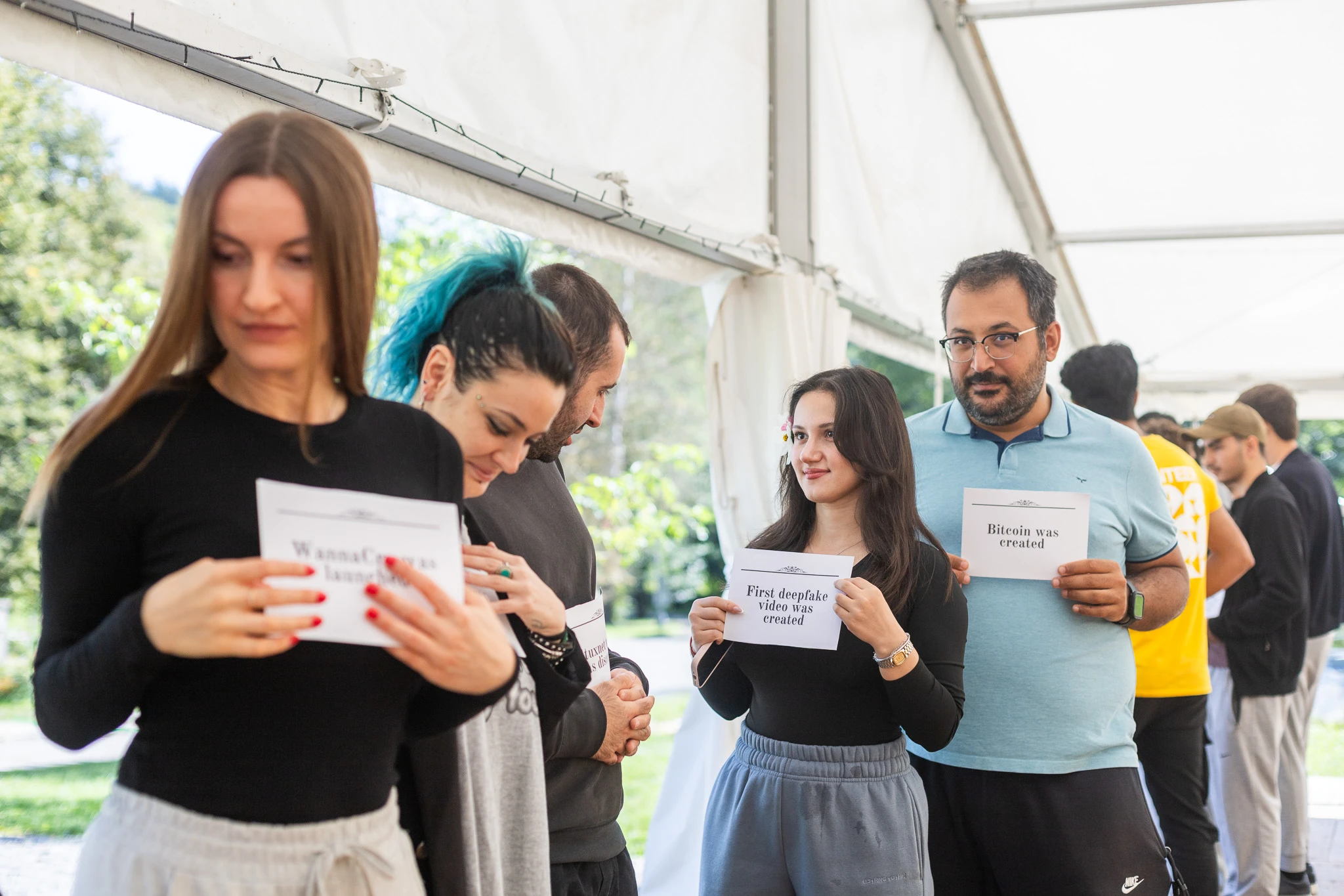 The week was filled with an interactive program led by Fakescape trainers Tereza Kráčmarová and Pavel Brejcha, combining discussions, sharing, creativity, and gamification. Each day, we dug a little deeper – from the basics to highly specific scenarios. How do you spot manipulative content? What makes a phishing email convincing? How are deepfakes created, and why do we fall for them so easily? And how can we explain these complex phenomena in a way that’s fun, understandable, and impactful?